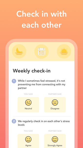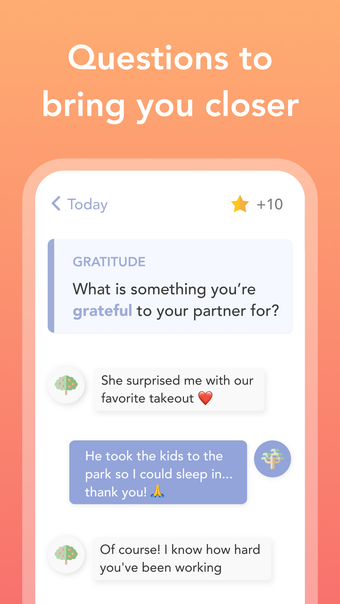 Setiap hari, kami akan menanyakan pertanyaan tentang hubungan dan pasangan Anda. Setelah menjawab, Anda akan mendapatkan percakapan dengan pasangan Anda.